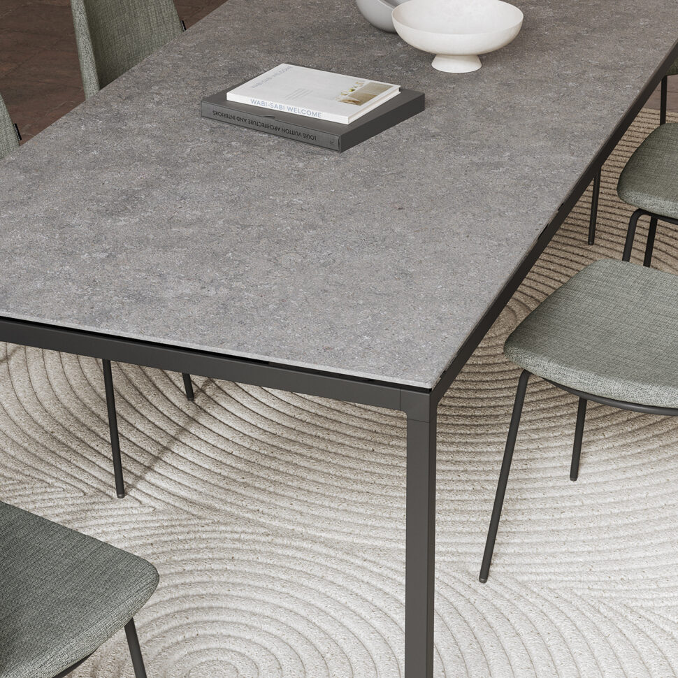 De Aresta-collectie van vaste en uitschuifbare tafels valt op door de elegantie en de kwaliteit van de gebruikte materialen. De bladen van deze tafels zijn vervaardigd uit met glas gelamineerd technisch keramiek, waardoor duurzaamheid en esthetiek worden gecombineerd. Dit innovatieve materiaal voegt niet alleen een vleugje verfijning toe, maar maakt ook eenvoudig schoonmaken mogelijk en garandeert een uitzonderlijke bestendigheid door de tijd heen.